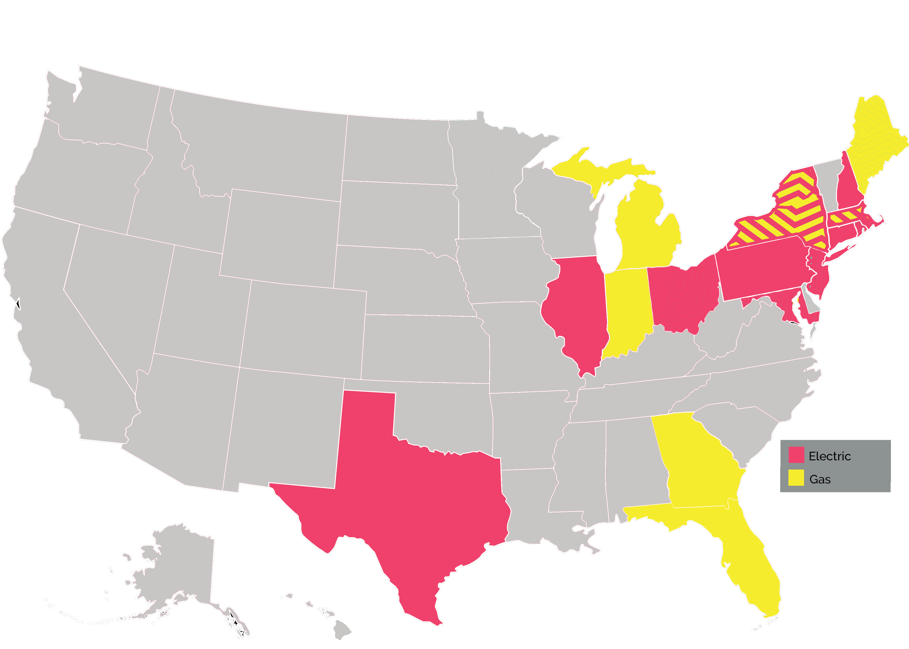 Natural Gas: Connecticut, California, DC, Florida, Georgia, Illinois, Indiana, Maine, Massachusetts, Maryland, New Hampshire, New Jersey, New York, Ohio, Pennsylvania, Rhode Island and Texas.
